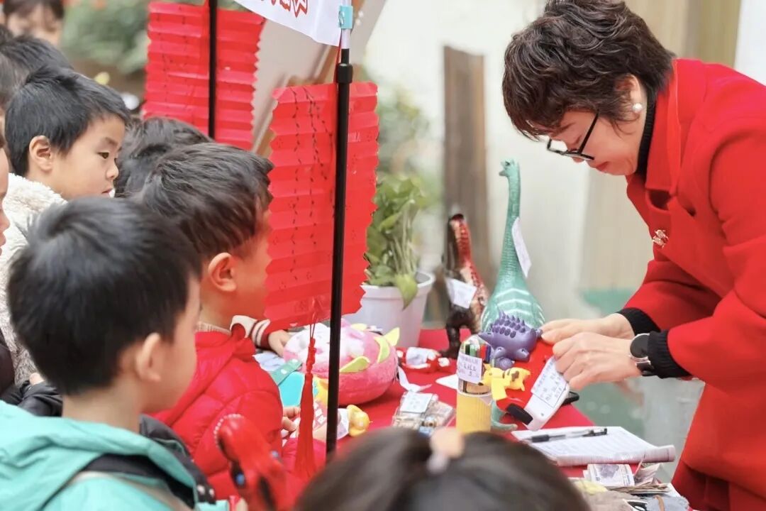 “柿柿如意”“萌宝杂货铺”“福气小摊”……一个个由师生共同布置的摊位,陈列着玩具、绘本、文具和手工作品。孩子们认真询价、支付现金,在真实的买卖中学习沟通、计算与选择。每一笔交易都被认真记录,让爱心清晰可见、有迹可循。