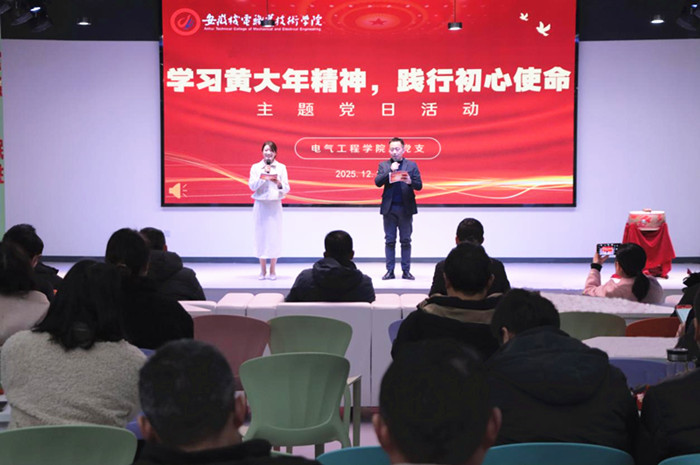 2025年12月31日,安徽机电职业技术学院在大学生活动中心组织开展“学习黄大年精神,践行初心使命”主题党日暨黄大年式教师团队创建示范活动。学校党委委员、副院长段贤勇,第四批“全国高校黄大年式教师团队”创建成员及部分教职工齐聚一堂,共悟初心使命。