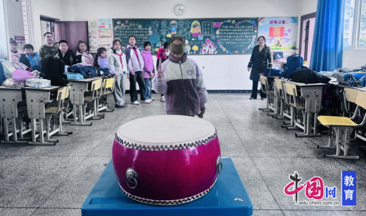 活动开始前,教室里的黑板上画满鲜活主题,墙角彩色气球裹满热闹气息,游戏规则被工整写在板报旁。没有复杂装饰,却把“新年要欢喜”的心思藏在了每一笔画、每一只飘起的气球里。不一会儿,校园变成了欢乐的海洋。各班的特色游戏轮番登场,孩子们有序地排起队伍参加活动,玩游戏,练本领,不亦乐乎。夹弹珠、吹蜡烛、盲人敲鼓、巧运乒乓球等各种游戏项目,让孩子们动手又动脑地在一个个游戏场地中流连忘返。