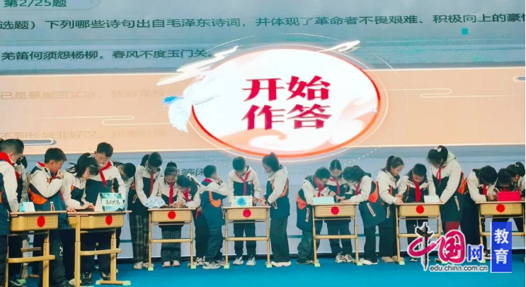 四至六年级诗词大会如期而至。活动开始,副校长邹文娟登台致辞,勉励大家以诗为伴、以书为友,让中华优秀传统文化浸润心田。杨雄杰、胡翔两位主持人妙语连珠、从容调度,各位评委老师严谨评判、公正打分,全程辛苦付出。同学们徜徉诗词海洋,展开多轮精彩比拼:经典诗词背诵环节,大家流畅诵出千古佳句,尽显积累功底;飞花令对决现场,选手们围绕经典意象快速应答,展现出深厚的诗词底蕴。古老诗词在赛场焕发新时代光彩,既为读书节画上圆满句号,又以传统文化之美喜迎新年,深深激发了全体师生对中华优秀传统文化的热爱与传承之志。