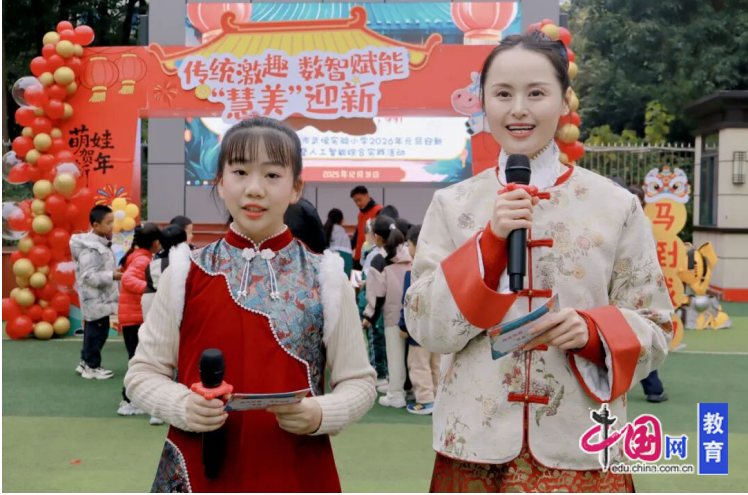 成都市磨子桥小学分校举行“元旦迎祥瑞,书香满校园”主题活动。舞蹈《书中看世界》以灵动肢体语言诠释阅读的乐趣与对广阔世界的向往;《福娃闹马年》则充满童趣,以欢快节奏舞出对新年的纯真祝福。庄严而喜悦的仪式,不仅凝聚了全校师生,更在孩子们心中埋下了以书香为伴、以梦想为引的种子。