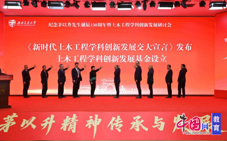 从嘉陵之畔薪火初燃,到蜀地沃土春华秋实;从栉风沐雨守文脉之根,到奋楫争先筑强国之基。1月5日,值茅以升先生诞辰130周年、西南交通大学建校130周年双庆将至的重要节点,西南交通大学纪念茅以升先生诞辰130周年暨土木工程学科创新发展研讨会在该校九里校区举行。群贤毕至,少长咸集,各界嘉宾与“交大”师生齐聚一堂,共缅宗师风范,共话精神传承,共商学科发展,以赤诚之心致敬先贤,以奋进之姿续写华章,恰如先贤所言“人生一征途耳,其长百年,我已走过十之八九。回首前尘,历历在目,崎岖多于平坦,忽深谷,忽洪涛,幸赖桥梁以渡。桥何名欤?曰奋斗”,这份奋斗之姿,在今日“交大”校园薪火永续、生生不息。