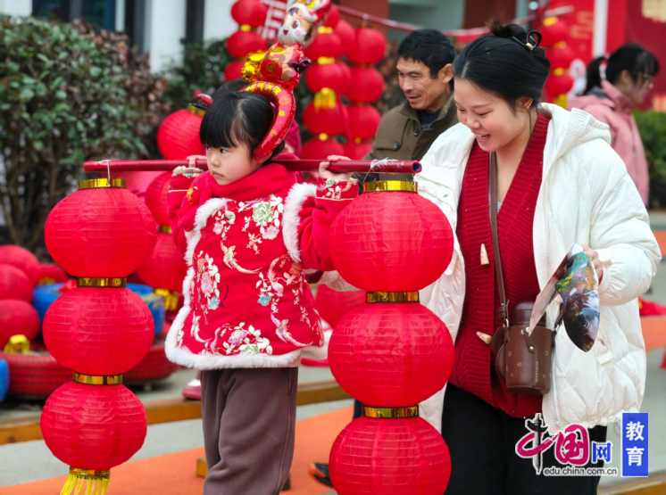 非遗手工区,孩子们与家长共同体验非遗脸谱涂绘、新年拓印、挑灯笼、捏面人、马年书签制作、巧手剪窗花、纸艺灯笼DIY……亲子合作的身影遍布活动现场。