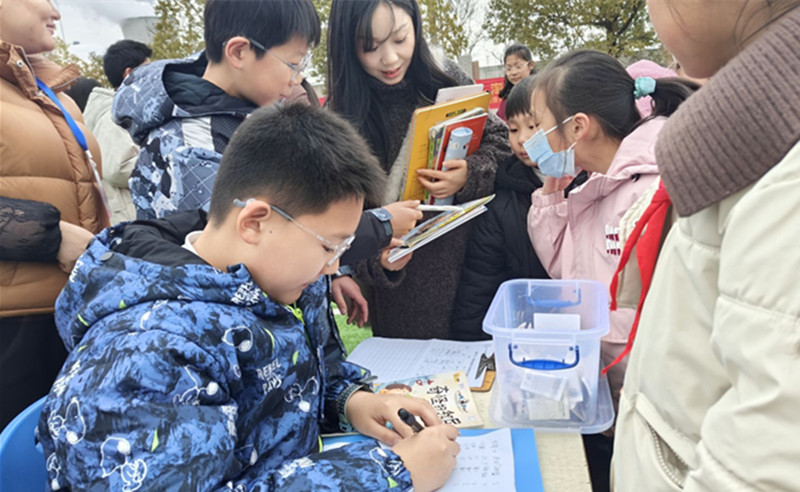 随后,谢晖宣布:“合肥市五一小学2026年元旦书籍跳蚤市场正式开始!”话音刚落,早已摩拳擦掌的同学们立刻投入到热闹的“淘书大战”中。校园内的跳蚤市场区域,各班的“书摊”整齐排列,同学们化身“小老板”,将自己珍藏的童话书、科普书、作文集、绘本等各类书籍整齐摆放,还精心制作了创意十足的宣传海报,有的大声吆喝着“好书不贵,快来淘!”“买一送一,走过路过不要错过!”,有的则耐心地为前来询价的“小顾客”介绍书籍内容。“小顾客”们穿梭在各个书摊之间,认真挑选着自己心仪的书籍,时而驻足翻阅,时而与“小老板”讨价还价,时而与同伴分享淘书心得。不少同学用低廉的价格淘到了心仪已久的书籍,脸上洋溢着满足的笑容;还有同学主动将自己的书籍捐赠出来,让知识在传递中发挥更大的价值。