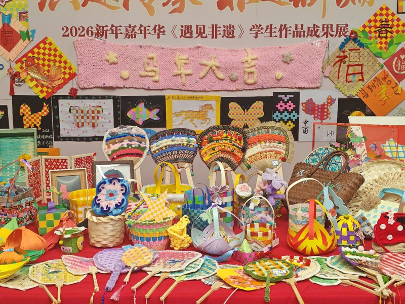 辞旧迎新之际,合肥市永红路小学2026新年嘉年华《遇见非遗》系列校园美术展正式拉开帷幕,本次学生美术作品展以非遗编织为主题,同学们将竹编、藤编、柳编等多种非遗技艺搬进校园,呈现了一场兼具非遗韵味与童趣活力的视觉盛宴。