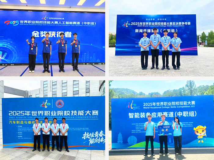 学校将技能大赛作为教学改革的重要抓手,构建“国际级-省级-市级-校级”四级竞赛体系,通过“以赛促学、以赛促教”全面提升学生专业水平。近三年,学校斩获国家级奖项20项、省级一等奖157项,奖牌总数位居全省前列。在2025年世界职业院校技能大赛中,学校团队实现历史性突破,获1金2银1铜。这些成就依托于学校持续投入的实训设备更新、名师团队指导及智慧教育平台资源优化,真正将赛场变为技能锤炼的“熔炉”。