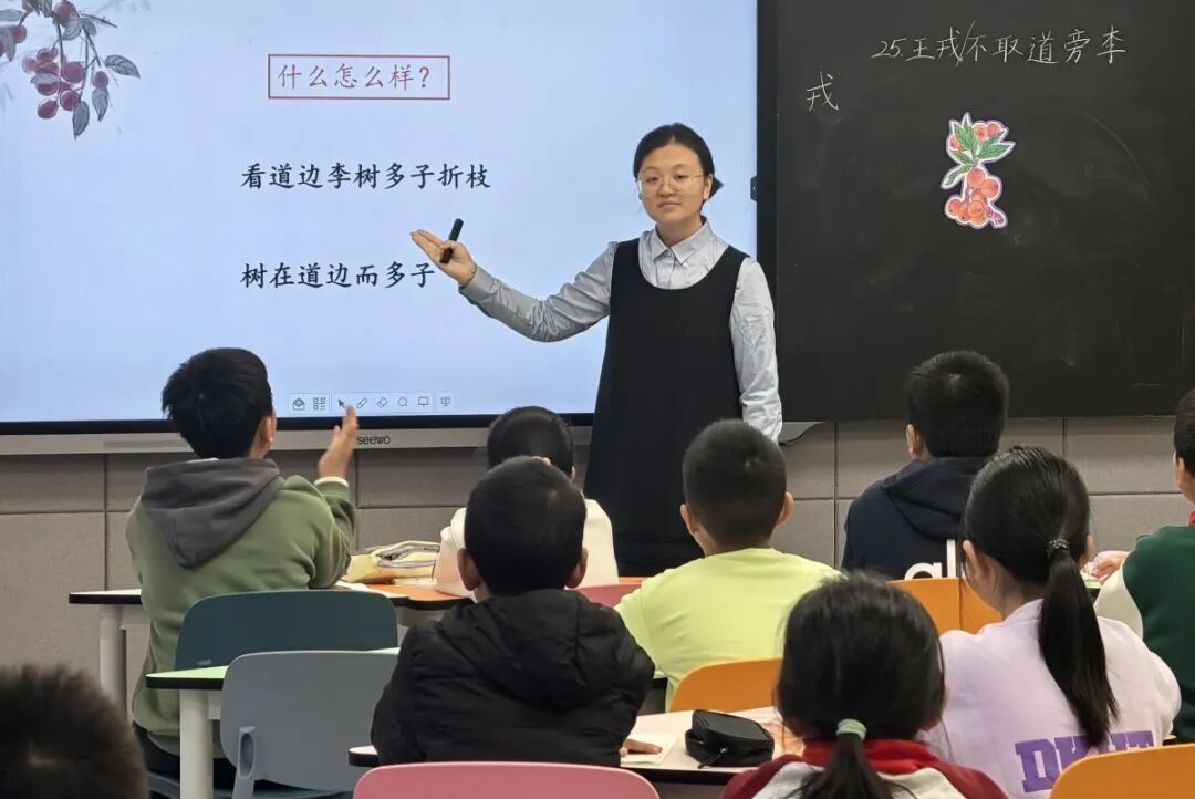 语文组的展示贯穿各学段,亮点纷呈。高段组陶菲老师执教《夏天里的成长》,带领学生梳理行文脉络、体悟成长哲理;马骁敏老师的《盼》聚焦心理描写,通过角色扮演让学生沉浸式感受主人公的期盼之情。中段组唐华悦老师的《王戎不取道旁李》引导学生自主梳理文言字词、小组辨析文意;丁维娜老师的《西门豹治邺》以合作探究深化主题理解;吴思妤老师的《故事二则》巧用对比阅读提升文本解读能力。