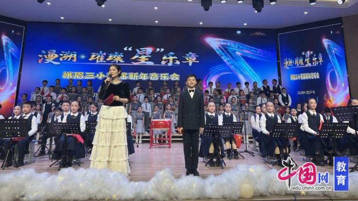 近日,峨眉山市第三小学校星光剧场内乐声回荡、星光熠熠,“漫溯·璀璨‘星’乐章”首届新年音乐会暨元旦庆祝活动隆重举行。本次活动以音乐为纽带,串联经典与未来,致敬岁月与梦想。峨眉山市教育局、市教师培训中心、市教研室及学校相关领导参加本次活动,与师生、家长代表共同见证这一美好时刻。