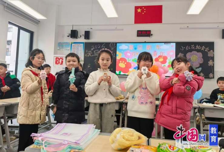 五年级化身游戏乐园,“福气套圈圈”活动备受欢迎,孩子们精准投掷,收获小礼物的同时,也寓意套住新年好运。礼物交换环节,孩子们互赠心意,传递真挚祝福。