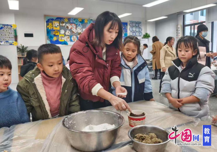 一年级教室飘来糯香,“汤圆宝宝诞生记”活动正在进行。孩子们亲手搓揉糯米团,制作圆滚滚的汤圆,还有孩子将笑脸造型包入其中,传递新年美好祝愿。