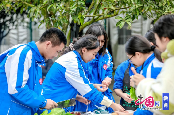 “大地厨房”野炊环节成为检验团队协作能力的实战课堂。同学们化身“美食创客”。洗菜时的细致分拣、切菜时的手法摸索、生火时的耐心调试、炒菜时的火候把控,团队的分工协作让同学们在实践中理解了“众人拾柴火焰高”的深刻内涵。当一道道亲手烹制的菜肴端上桌,同学们不仅品尝到了食物的鲜香,更体会到了劳动的价值与不易,这份满载汗水与默契的午餐,成为最珍贵的味觉记忆。