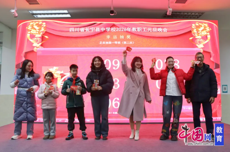 为营造温馨祥和的节日氛围,凝聚教职工团队力量,展现学校团结奋进的精神风貌,2025年12月31日,四川省长宁县中学校在闻馨园一楼举办教职工元旦共庆晚会。全校教职工齐聚一堂,通过节目共赏、佳肴共享、幸运抽奖等环节,在欢声笑语中辞旧迎新,传递温暖与力量。