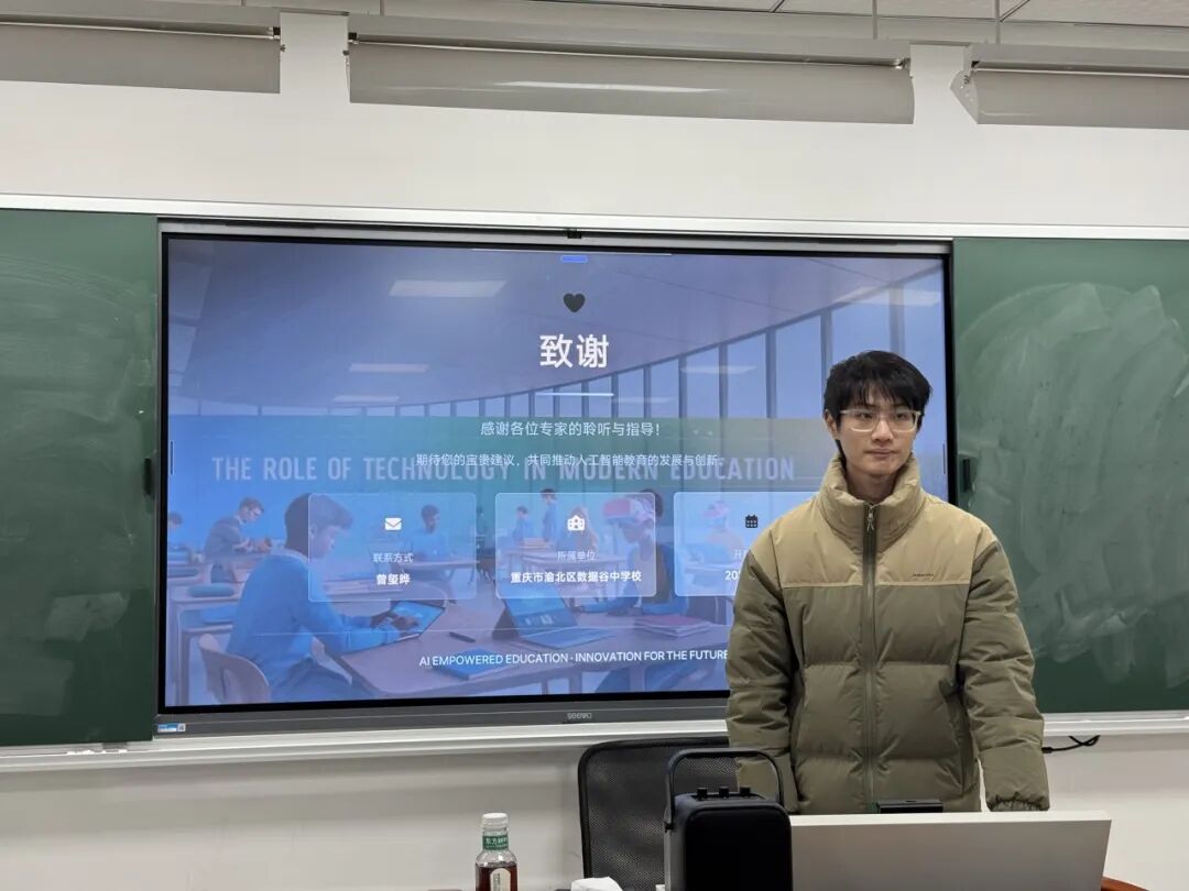 刘冬梅老师执教《南瓜灯3D新次元》,以项目化学习为主线,引导学生从传统文化中汲取灵感,运用三维设计技术进行创意转化;杨萧老师带来《密室逃脱》创意编程综合实践课,以沉浸式情境任务驱动学习,让学生在解锁关卡、协作探秘中运用变量、循环、条件判断等编程逻辑,锻炼计算思维与团队沟通能力。专题报告环节,曾玺晔老师基于区级规划课题,作《“双新”背景下初中人工智能通识课程“1+5+n”教学模型构建与实践》报告,阐释“一个核心目标、五环教学模式、多元项目延伸”的结构化路径;新教师代表杨豪分享人工智能教育听课感悟,结合多节观摩课例谈理解与反思,彰显“传帮带”的教研氛围。