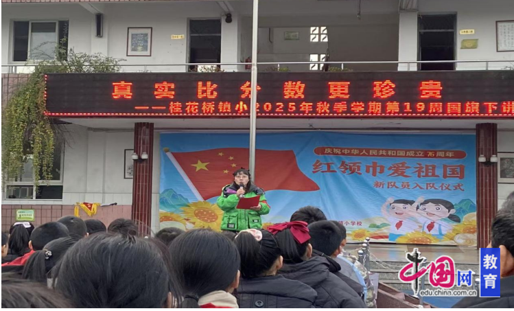 1月5日,在升旗仪式上,峨眉山市桂花桥镇小学校少先队辅导员以“真实比分数更重要”为题,作期末考试动员讲话。全体师生参加本次活动。