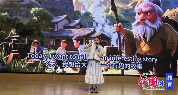 三四年级的萌娃们带着满满的活力登场,用稚嫩却真挚的表达点亮舞台。外语讲故事环节,他们化身“小小故事家”,用简单地道的英语讲述着孔融让梨、井底之蛙等浅显易懂又蕴含哲理的中国故事。虽然语言表达略显稚嫩,但清晰的吐字、认真的神情和生动的手势,让每一个故事都充满童真童趣,台下不时响起会心的笑声与热烈的掌声。