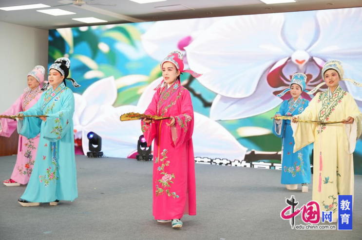 文艺演出在优美的舞蹈《花开中国》中拉开序幕。舞蹈《万泉河畔》《舞韵国风》《天浴》《戏文说》《伞韵》《金达莱盛开的地方》《大红灯笼迎新春》,时装秀《时尚之都》,以及越剧选段《兰花吟》等一个个精彩纷呈的节目,生动展示了离退休教职工老有所学、老有所乐、安享幸福晚年的美好场景。