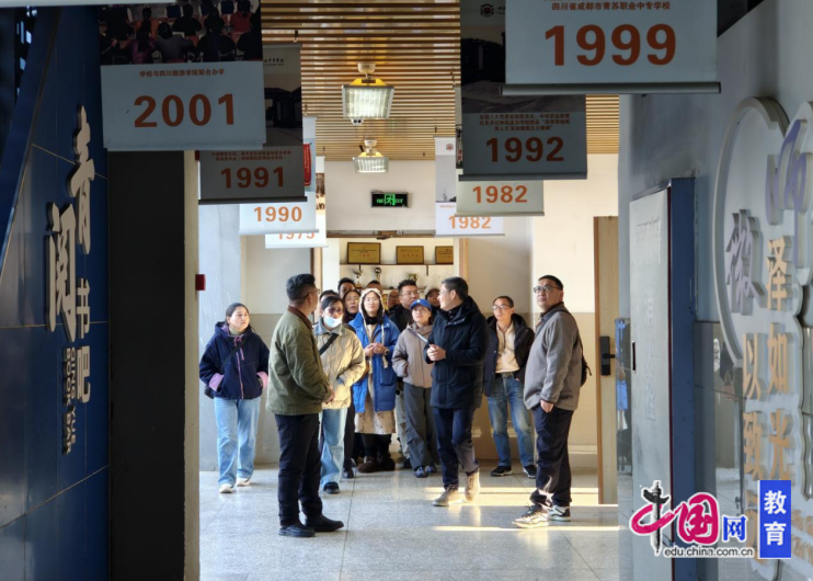 在唐勇的陪同下,西藏职教同仁实地走访了青苏职中巴蜀匠谷、航空体验园、国际动漫体验园、百年中国动画史长廊、电脑手绘室、校园电视台、西餐体验园、开放式校史馆、校史文化长廊、青阅书吧、幼儿保育实训基地、好瓷胜玉陶瓷馆、心理健康与生涯规划中心和汽修实训基地。