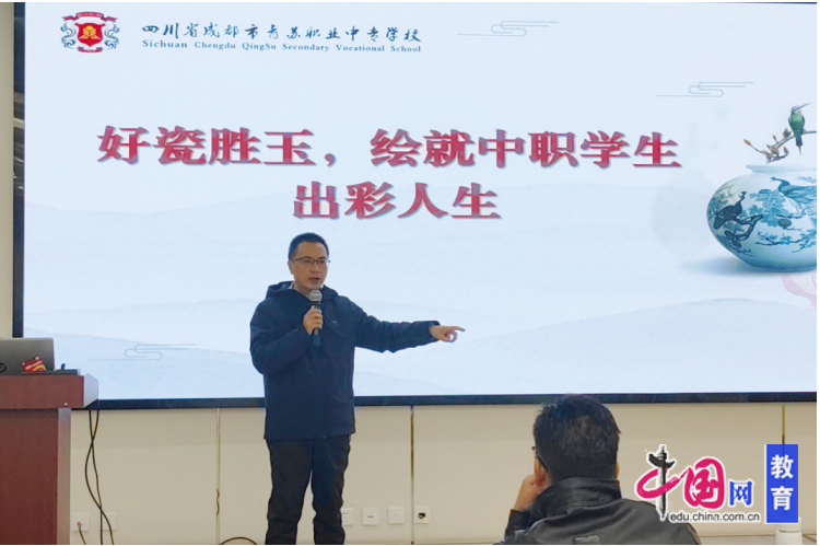 张涛以《好瓷胜玉,绘就中职学生出彩人生》为题进行分享,从“中职学校立德树人工作面临的困难”“落实立德树人工作的思考”和“立德树人班级建设九度”三个方面,分享青苏职中班主任育人策略。“坚守教育初心,潜心立德树人。”他建议,班级建设要着力于:指导思想站位立“高度”、班级情况分析挖“深度”、班级建设目标设“梯度”、班级建设内容拓“广度”、班级建设措施抓“力度”、班级活动安排增“密度”、专业人才培养显“精度”、班级品牌建设添“亮度”和学生情况阐述有“温度”。