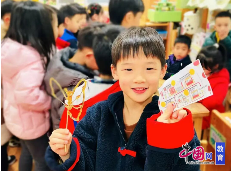 “童悦迎新·游戏嘉年华”分年龄段展开,将传统文化融入互动体验。大班幼儿走进“非遗工坊”,体验皮影制作、春联拓印、糖画、剪纸等传统技艺,在亲手实践中感受匠心传承;中班开展“书香迎新”活动,通过故事分享、手工书与书签制作,融合阅读与艺术;小班则邀请家长入园,共叙新年习俗,并以一场温馨的新年电影派对收尾,家园共育,亲情满溢。