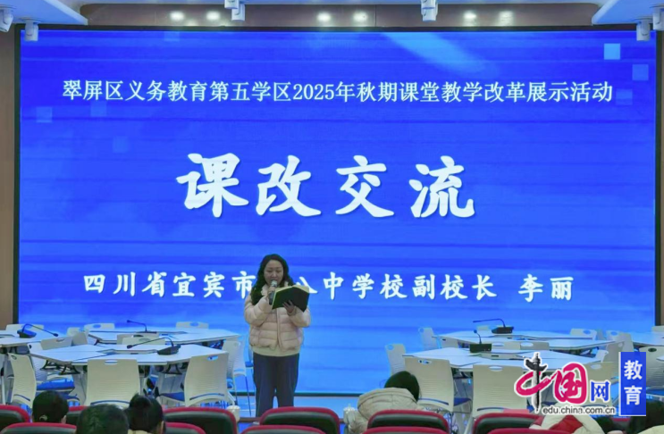 近日,宜宾市翠屏区义务教育第五学区(中学)2025年秋期课堂教学改革展示活动在宜宾市第八中学校莱坝校区成功举办。本次活动旨在展示学区各初中学校在课堂教学改革中的阶段性成果,搭建教师交流互鉴的协作平台,共同推动学区教育教学质量整体提升。学区内各校教务主任、教研组长、备课组长及授课教师共同参与了本次活动。