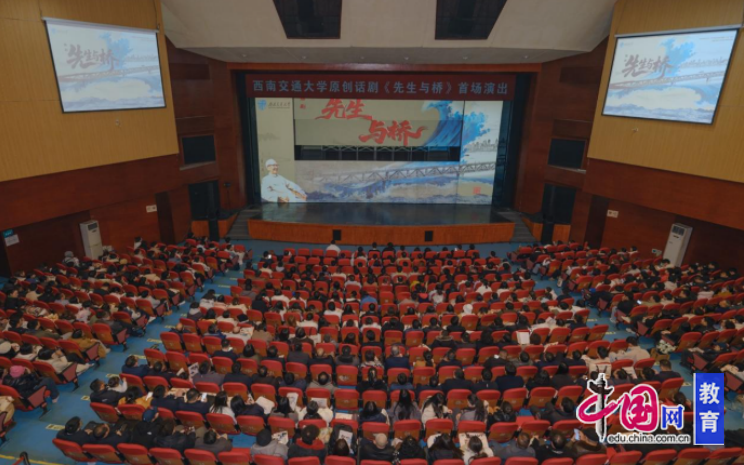 “剧中茅以升先生‘五行缺火真来火,不复原桥不丈夫’的誓言,以及晚年回顾一生,写下‘桥何名欤?曰奋斗’的人生注脚时,现场爆发经久不息的掌声。尾声处,舞台光影流转,从钱塘江大桥到武汉长江大桥、港珠澳大桥,再到飞驰的高铁、探索星空的‘天宫’,一代代‘交大人’及中国工程师的奋斗群像徐徐展开,清晰勾勒出‘从一人之桥到万千脊梁’的精神谱系。”据西南交通大学相关负责人介绍,《先生与桥》作为四川省首批入选“科学家故事舞台剧推广行动”的剧目,将科学家精神从抽象理念转化为鲜活故事,是科学家精神在巴蜀大地传承发展的有力印证,本次话剧首演,是四川科协与西南交通大学深化合作、共同推进科学家精神传承的又一重要成果。《先生与桥》历时一年创排完成,全剧59名演职人员均为该校师生校友,话剧以“师生演校友、学弟演学长”的方式,再现一代大师茅以升先生及代代“交大人”的家国情怀与强国担当,广大师生在编、排、演、观的全过程中,实现从“被动听讲”到“主动感悟”再到“亲身诠释”的深刻转变,有效提升思想政治教育的感染力与实效性。