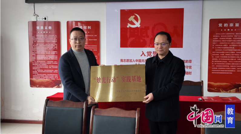 在启动仪式上,廖霆代表民盟宜宾市委会为怡乐镇中心学校“烛光行动”实践基地授牌。