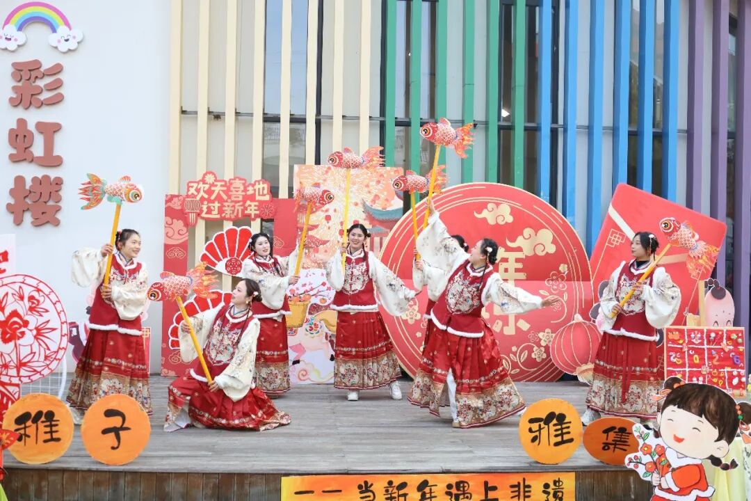 长廊转角,灯影摇曳。鱼灯游弋,如星河入梦;花灯盏盏,点亮了孩子眼里的好奇与欢欣。舞台上,衣袂飘飘,姿态天真。一展一演,不仅是技艺的再现,更是文化在孩子心中悄然生根的印记。