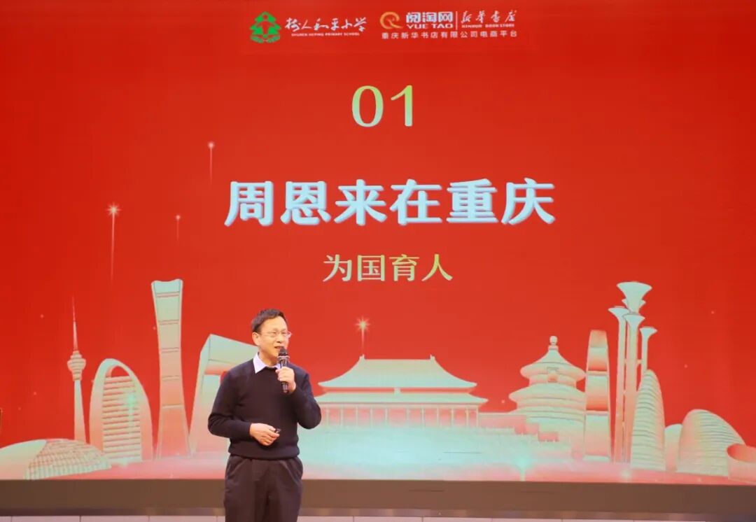 活动中,樊家勤爷爷结合其代表作《周恩来在重庆》,讲述了周总理在渝的峥嵘往事:抗战时期到访育才学校题词勉励师生,1947年指示移交八路军驻渝办事处物资支持办学,飞机遇险时让出降落伞等。他勉励孩子们珍惜当下,以伟人精神为指引,长大后为社会作贡献。