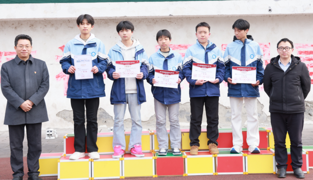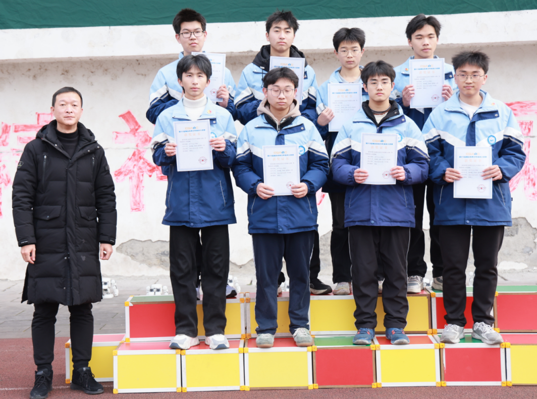 在第23届重庆市青少年机器人大赛中,唐城弘、张瑞、罗浩、胡家辉、杨林鑫、卢镜淞、谢鸿键、王坤八位同学凭借出色表现荣获一等奖,任晓永副校长、龚茂委员为他们颁奖,肯定了他们在科创实践中的优异成绩。
