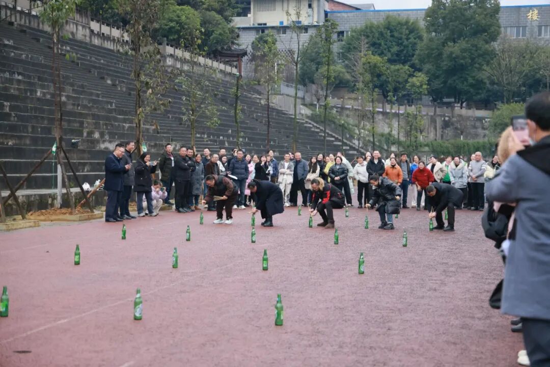 岁末年初,万象更新。为迎接2026年元旦的到来,丰富教职工业余文化生活,营造团结协作、积极向上的校园氛围,重庆市南川一中工会于2025年12月31日下午在学校运动场精心组织了别开生面的庆元旦"插秧"比赛活动。