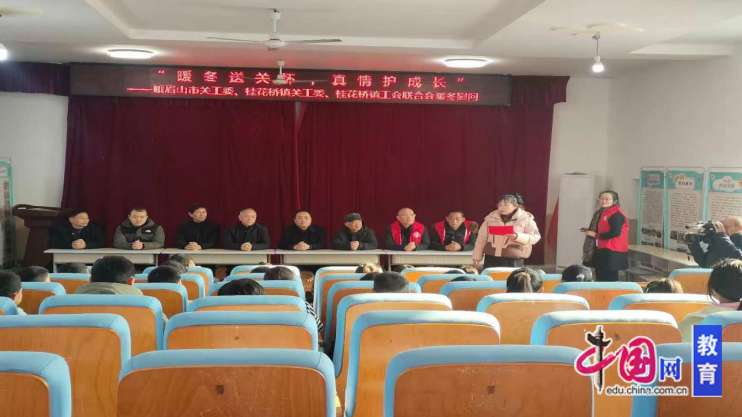 1月9日,峨眉山市关心下一代工作委员会联合桂花桥镇关工委、桂花桥镇工会,在峨眉山市桂花桥镇小学校开展“暖冬送关怀,真情护成长”主题慰问活动,为学校25名困难学生送去冬日的温暖与关怀。