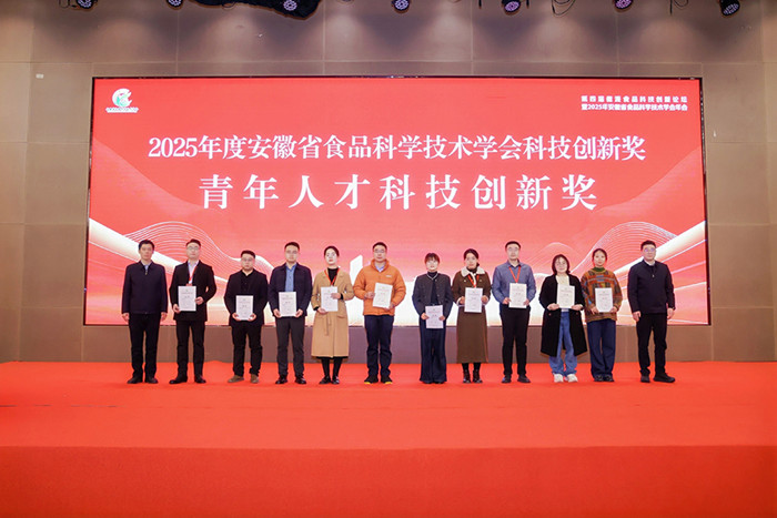 论坛同步开展安徽省食品科学技术学会2025年度科技创新奖颁奖、团体标准发布、研究生优秀学术报告评选等重要活动。滁州学院生物与食品工程学院聂文博士荣获“青年人才科技创新奖”。(图文/滁州学院)