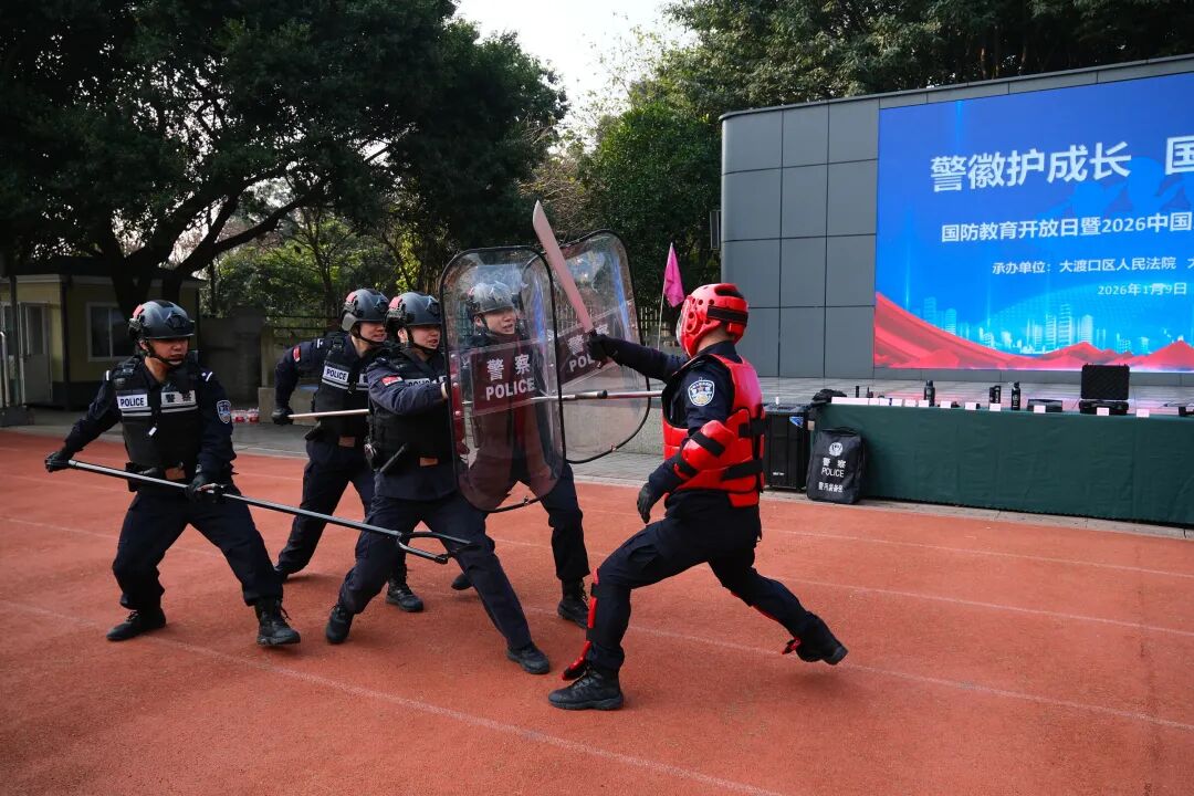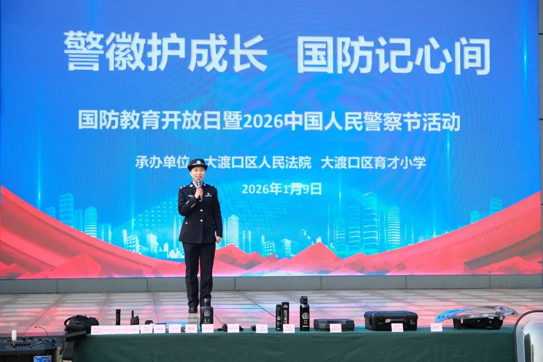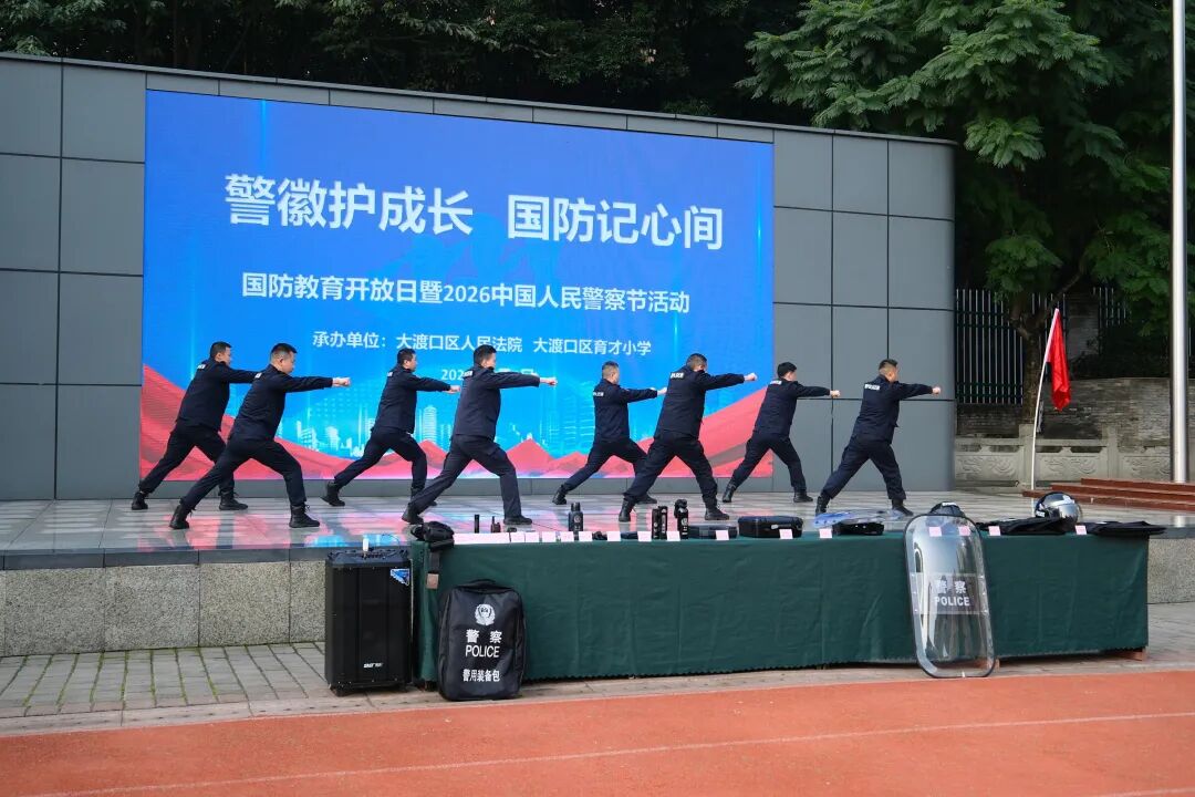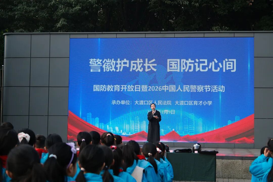 为深入贯彻国防教育精神,厚植青少年爱国情怀,增强学生安全防护意识与自我保护能力,在我国第六个“中国人民警察节”来临之际,2026年1月9日,重庆市大渡口区育才小学隆重举办“警徽护成长・国防记心间”主题国防教育活动。活动特邀大渡口区人民法院司法警察团队倾情助力,通过沉浸式体验、互动式教学、实战化模拟等丰富形式,为全体师生呈上一堂生动深刻的国防安全教育课。