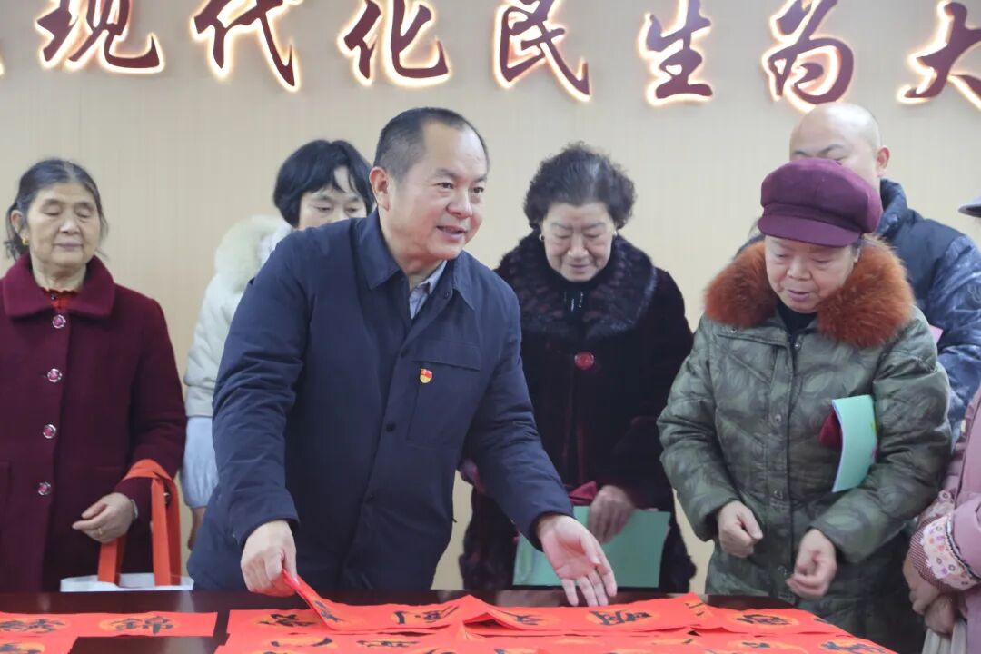 “翰墨送福・文明同行” 志愿服务成为活动亮点。书法教师现场挥毫,将新春春联、“福” 字赠予居民,让文明理念随笔墨书香传递。同时,政策咨询台人头攒动,党员教师为居民解答入学政策、课后服务等疑问,切实回应教育关切。