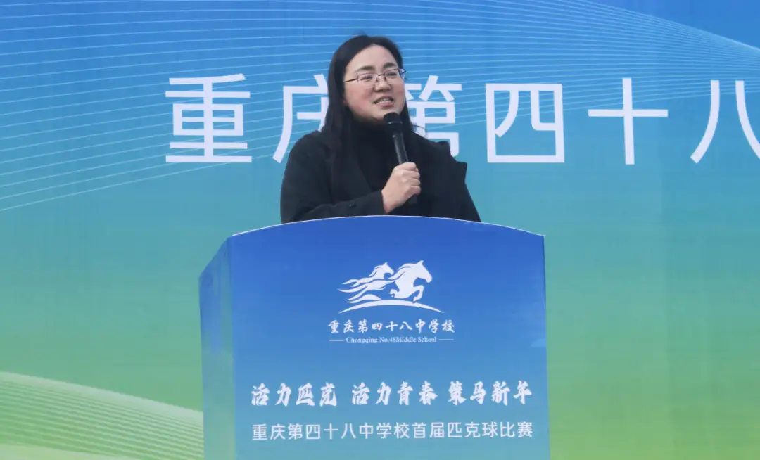 北碚区教委副主任黄蕾在讲话中充分肯定了学校举办匹克球比赛的意义,认为此次比赛的举办正是学校积极响应“健康第一”的教育理念,主动丰富校园体育文化活动形式的体现。她寄语师生们尽情享受这项新兴运动带来的乐趣,希望学校以此次比赛为契机,通过更多的特色体育项目,激发青少年的运动兴趣,培养终身运动的习惯,为建设体育强区贡献力量。