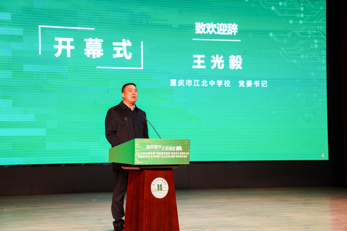 重庆市江北中学校党委书记王光毅致欢迎词。他简要回顾了江北中学117年的办学历程,学校始终坚守教育初心,深耕育人沃土。他还分享了学校在“智慧教学”与“生命教育”领域的探索成果,学校“生命教育”实践荣获国家基础教育教学成果一等奖,为两江新区教育高质量发展提供了江中智慧。他表示江北中学期待与各位教育同仁深入交流、互学互鉴,共同书写两江新区教育发展新篇章。