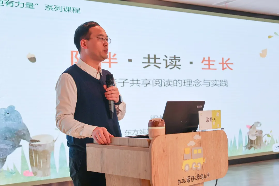 为进一步提升家长的科学育儿理念,促进亲子共读的有效开展,重庆市九龙坡区铁路幼儿园“小火车”家长学校于2026年1月8日下午特邀南京师范大学教育硕士、早期阅读研究专家、亲子共享阅读倡导人梁修才老师,开展了一场生动有趣的“家庭亲子共读”专题培训活动。