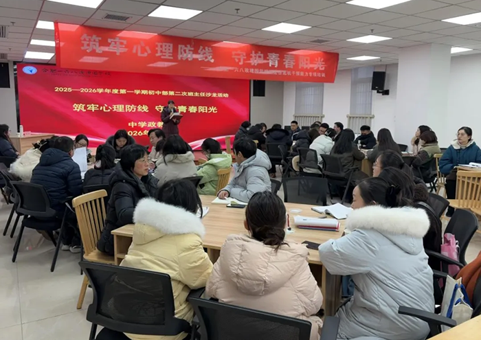 为切实提高班主任队伍的危机干预能力,全力构建平安、和谐、健康的育人环境。2026年1月6日下午,合肥一六八玫瑰园学校在2号楼九楼会议室成功开展了以“筑牢心理防线 守护青春阳光”为主题的班主任心理危机干预能力专项培训,初中部全体班主任参与本次培训,校长助理宫乐出席培训。