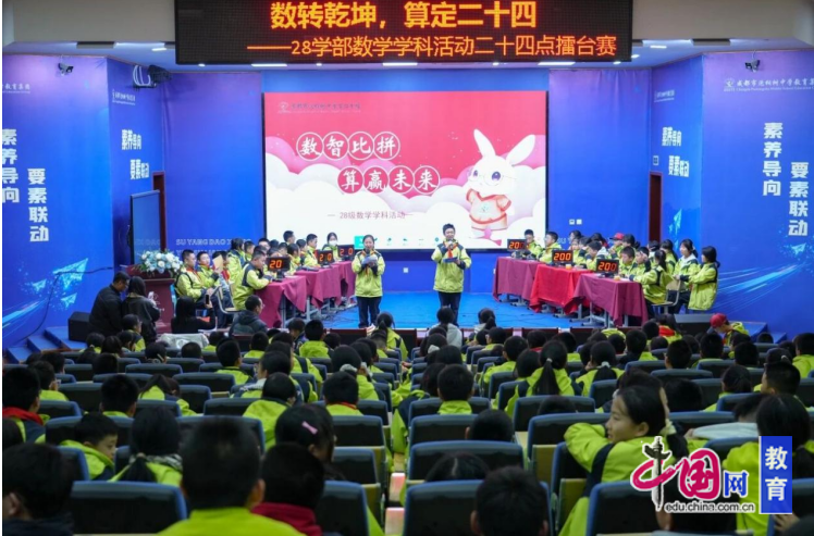近日,成都市泡桐树中学百仁分校2028学部组织开展了以“数智比拼,算赢未来”为主题的数学学科实践活动。本次活动涵盖计算能力大赛与“24点”数学游戏两大环节,旨在激发学生数学学习兴趣,提升运算素养与逻辑思维能力。