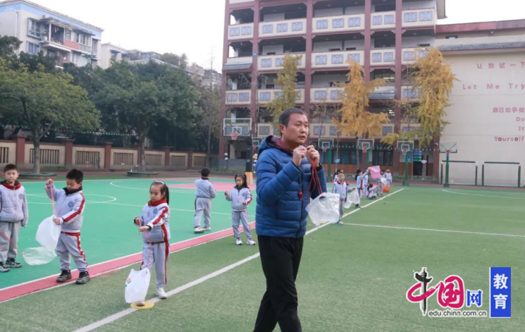 操场上,李欣老师为二年级学生带来了一堂别开生面的体育课。他将“放风筝”巧妙融入教学,组织“风筝接力赛”,引导学生在快慢跑变化中掌握运动节奏,通过分组合作锻炼协调能力与反应速度。这套“学、练、赛”一体化的游戏化设计,让孩子们在欢声笑语中不仅提升了运动技能,也潜移默化地培养了团队意识和活动安全意识。