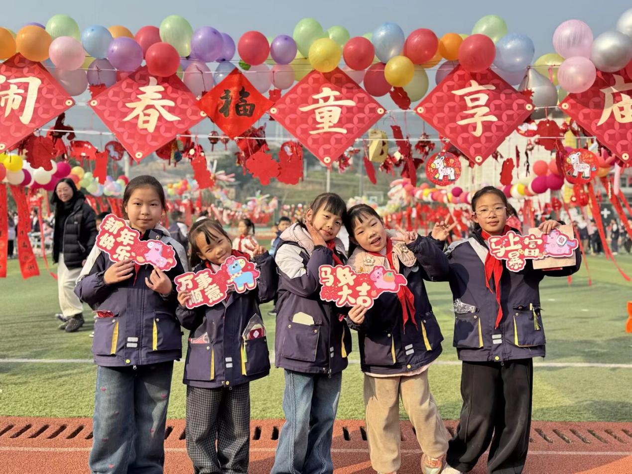 近日,重庆市翡翠湖小学“萌马闹春・童享庙会”热闹开启,全校1-6年级学生在老师与家长义工陪伴下,沉浸式体验非遗文化与传统民俗,共度欢乐新年。