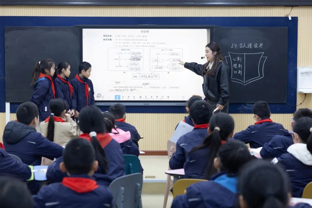 教共体成员校中梁实验学校的张钰雪老师执教五年级《古人谈读书》第二则,以读促学层层深入:先引导学生读准字音、划分停顿,再借思维导图厘清“三到”逻辑,更联动曾国藩读书观设计仿写读书箴言任务。多样教学方法盘活课堂,让古贤的读书智慧真正落地于学生的阅读实践。