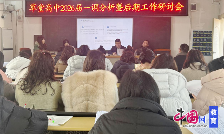为精准分析学情,优化备考策略,切实提升高三教学质量,1月13日,乐山市草堂高中召开了2026届高三一调分析会。学校党委副书记、校长张伟,纪委书记兰贤军,副校长赵雄、蒋羽,教务科副主任梁艳莉,年级主任张泗及全体高三教师参会。