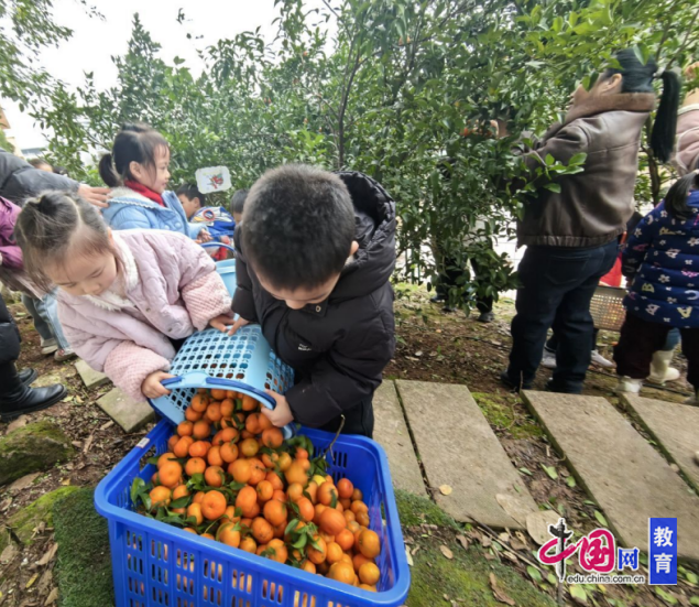 泸州市江阳区况场街道中心幼儿园开展自然采摘与冬季护树活动
