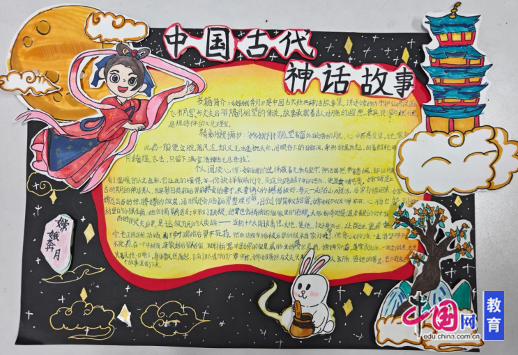 神话——人类童年的梦,民族文化的根。如果无法到达书中描绘的地方,那就成为读者。中国神话故事从亘古走向今天,历久弥新,在茫茫的历史长路之中从未褪色。四年级组的同学们手写我心,手绘我情,让这些灿烂的文化传播到每一个地方。