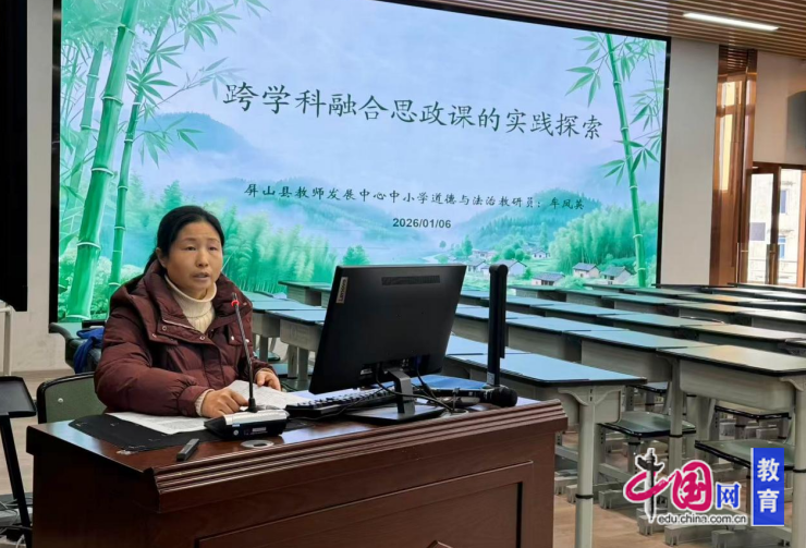 专题讲座环节,屏山县教师发展中心道德与法治教研员牟凤英以《跨学科融合思政课的实践探索》为题,结合具体教学实例,从主题设计、资源整合、活动实施等方面,分享了跨学科融合在思政课教学中的价值意义与实践策略,为参训教师拓宽教学思路提供了参考。