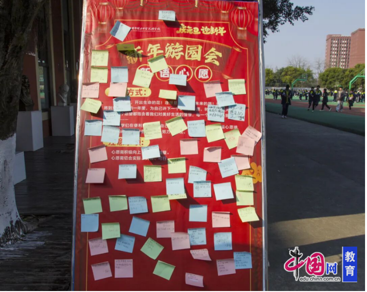 活动现场,“新语心愿”墙成为情感汇聚的角落。学生们认真书写下对新一年的展望与心愿——学业进步、友谊长存、家人安康、梦想启航……一张张五彩便签贴出的不只是愿望,更是少年们对自我未来的期许与规划,温暖而充满力量。