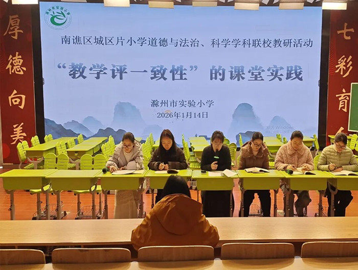 为深化课堂教学改革,落实“教学评一致性”核心理念,促进校际教育教学经验交流,1月14日,滁州市南谯区城区片小学道德与法治、科学学科联校教研活动在滁州市实验小学举办。城区片各小学道德与法治、科学学科骨干教师代表参与了此次活动。