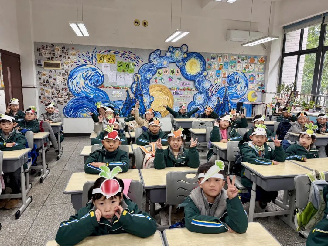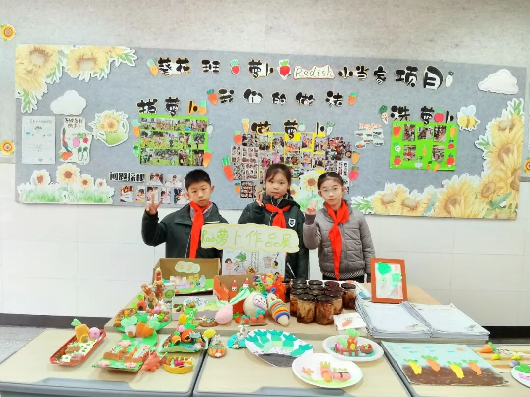 本次活动以学校农场自产的萝卜为真实课程资源,鼓励学生从生活中的有趣问题出发,开展项目式学习。学校发布《疯狂萝卜田选项指南》,提供文化与节气、科学探究、营养健康、农业可持续、艺术创作五大趣味方向,引导学生自主选择、在玩中探究。各班围绕驱动性问题,打破学科界限,设计出富有创意的萝卜项目,真正实现了玩中学、学中思、思中创。