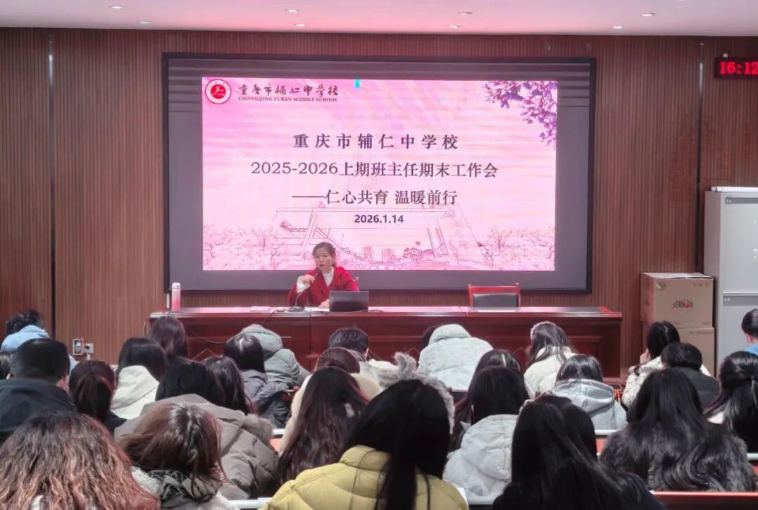 临近期末,为进一步凝聚育人共识、明确工作任务,确保学期工作平稳收官,1月14日下午,重庆市辅仁中学校在学术报告厅召开了2025-2026学年上期班主任期末工作会议。本次会议由学生发展中心副主任杨中华主持,会议围绕“仁心共育 温暖前行”主题展开,既有温情分享,也有务实部署。